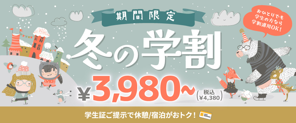 - 学生って最高、お得すぎる! 豪華露天風呂、岩盤浴、・・・ > 詳しくはこちら
