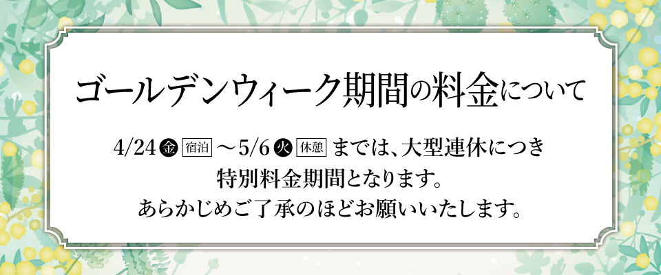 - 【お知らせ】ゴールデンウィーク期間の料金について