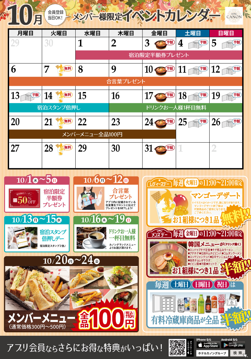 【10月度】メンバー様限定イベントカレンダー|【公式】姫路ラブホテル|カノン(Canon)|姫路東店